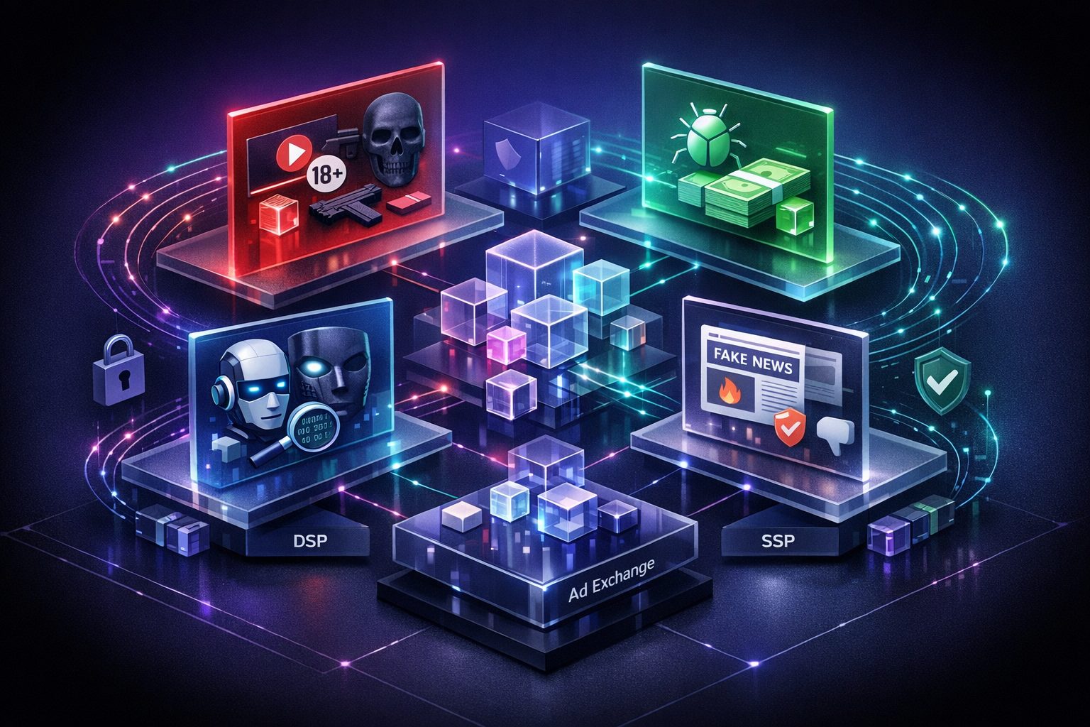 Brand safety of your brand in programmatic buying is going to be whether you can get control over the sites where the ads show up, about what other content is surrounding those ads, and whether that impression is generated from a real and acceptable environment. It includes everything from content avoidance, fraud screening, supply quality, and policy enforcement across DSPs, SSPs, ad exchanges, and verification layers.
