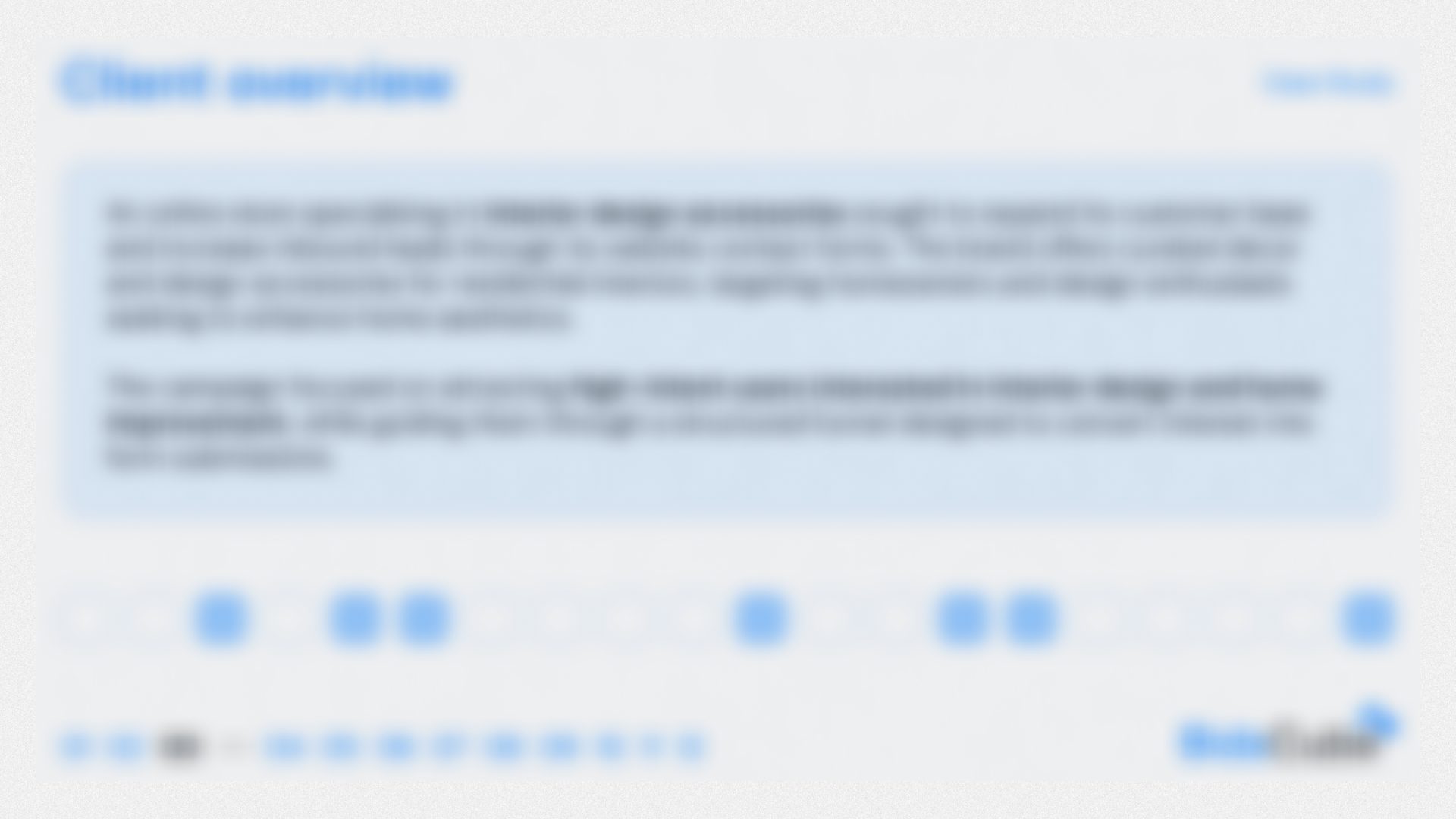 This case study demonstrates how a structured, full-funnel programmatic strategy executed via BidsCube DSP enabled an interior design accessories retailer to improve lead generation efficiency. By combining precise audience targeting, clear separation of prospecting and retargeting, and ongoing optimization across delivery variables, the campaign effectively converted high-intent users and delivered measurable growth in form submissions.