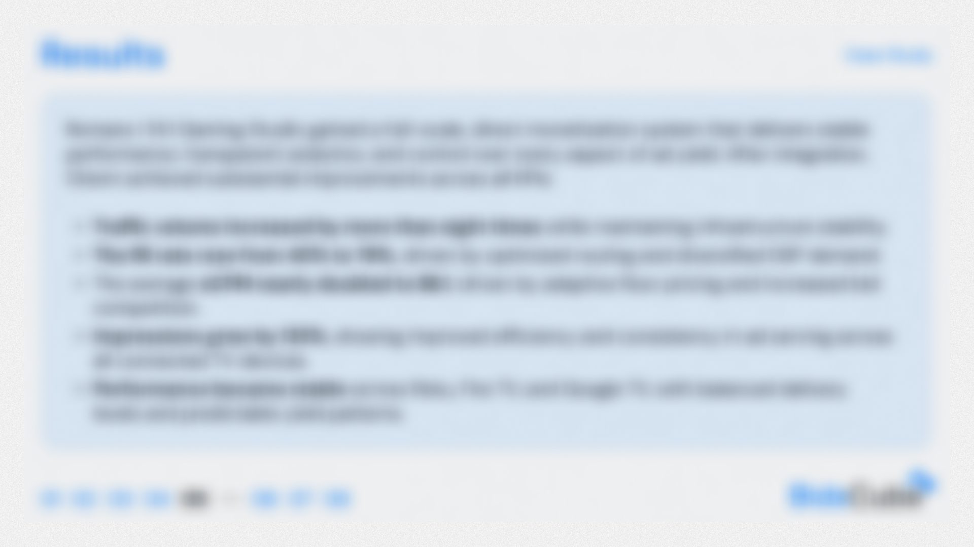 Client gained a full-scale, direct monetization system that delivers stable performance, transparent analytics, and control over every aspect of ad yield. After integration, Ckient achieved substantial improvements across all KPIs: